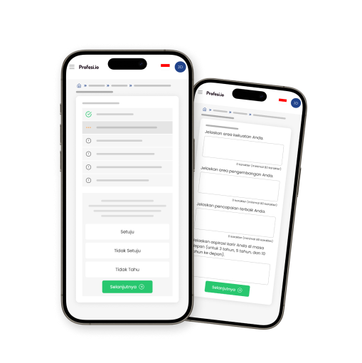 Profesi.io enable customized and tailored assessment process. Using technology to prompt questions to analyze individual strengths and competency gaps.